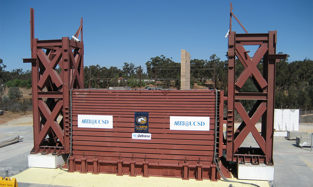LHPOST6 is a unique outdoor shake table facility that can accurately reproduce far- and near-field ground motions for the seismic testing of large structural, geotechnical or geostructural systems, or soil-foundation-structural (SFS) systems, up to a weight of 20 MN. A schematic of the LHPOST6 mechanical and servo-hydraulic components is shown in the accompanying figure.